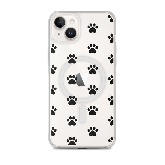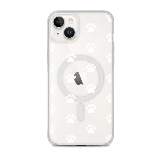 Magnetic Phone Case for iPhone: Paw Print Pattern (Clear)